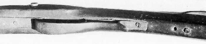 Two holes behind the trigger guard may have held quill vent-picks. The author poses that instead they may have been made by screws or nails holding one end of a simple fabric sling.