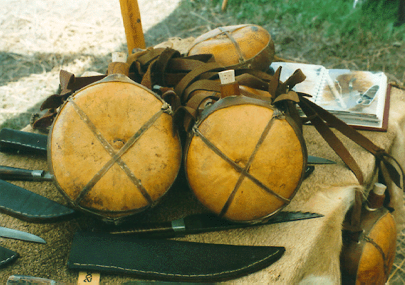 Member Mike Beathe (3214 East 106 St. N., Sperry, Oklahoma) is also a bladesmith and blacksmith. I was recently drawn to his display which included hand-made knives, Native American flutes, and rawhide-wrapped gourd canteens--all high-quality and out-of-the ordinary items.