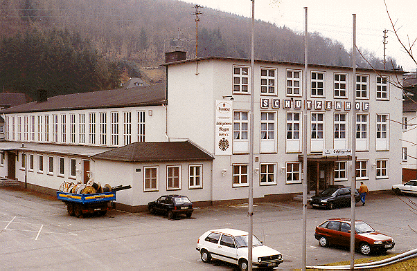 Shooting clubs are amazingly popular in the Sauerland. I found that every little village has two large buildings. One is the church and the other is the Schuetzenhalle. The tourist agency in Attendorn told me there are twelve to fourteen in Attendorn alone. The oldest dates back to 1222-the founding of the city. There are two types of clubs. The Schuetzenverin is independent. The Schuetzengesellshaft is associated with the Catholic Church. Most of the clubs have a patron saint on their flags. Religious symbols are on many medals and the silver mugs used by the clubs. Indeed, I first did not recognize the Schuetzen artifacts in the Attendorn Museum because they so resemble the adjacent church relics! Perhaps the prohibition of religion [actually religious discussion--ed.] in the U. S. Schuetzens mentioned by Tom Schiffer was an attempt to stifle friction between the Catholic and Lutheran factions. What I saw resembled the Knights of Columbus.