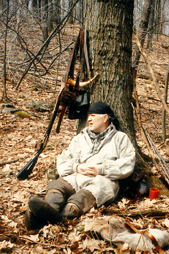 The author takes a rest on a recent excursion. After attending his first NMLRA Eastern Primitive Rendezvous he was hooked and began to collect mountain man "stuff" like there was no tomorrow
