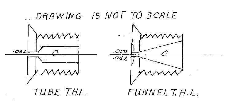 The hole in a percussion nipple runs between .020 and .030 in diameter, depending upon the manufacturer. This size hole is not practical for good ignition in a flintlock. For best results I use a liner with a .062 (1/16th.) hole for my flintlocks in .40 caliber or larger. For .32, .36, and .38 calibers, I like to use a .050 hole in the liner. With the smaller powder charges that are normally used in these small calibers, the .062 hole allows too much jetting of main powder charge out of the touch hole. This causes erratic pressures and affects the accuracy. The lag time between the jetting and ignition of the main charge makes it more difficult to hold through on the target in the offhand position, especially with a flintlock pistol. The smaller hole reduces the pressure loss from the main charge in a smaller caliber. I replace the touch hole liner when the hole gets about .008 larger than the original hole size, or when the accuracy falls off. A good, properly shaped liner should last for about 800 to 1000 shots, and that is a lot of shooting.