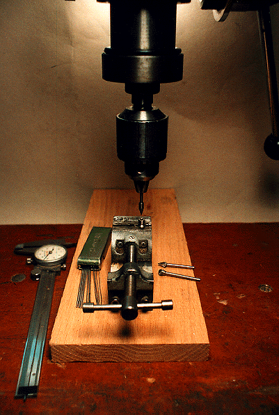 Touch hole liner set up to modify. Torch tip, cleaning wires, and caliper |