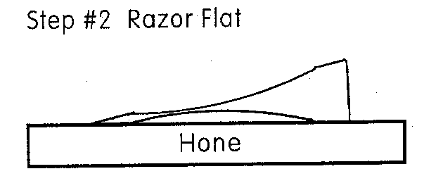 Keep the razor flat on the hone for the sharpening strokes. You need to use an equal number of strokes on each side.