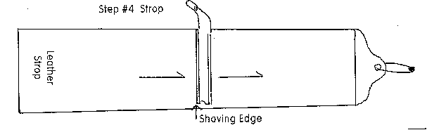 After sharpening you must strop your razor. Use a clean strip of leather, soft is preferred, about as wide as your razor is long and twenty-four inches in length. The strop should be equipped with a thong at the top so it can be hung on a hook at a convenient height for your stropping process.